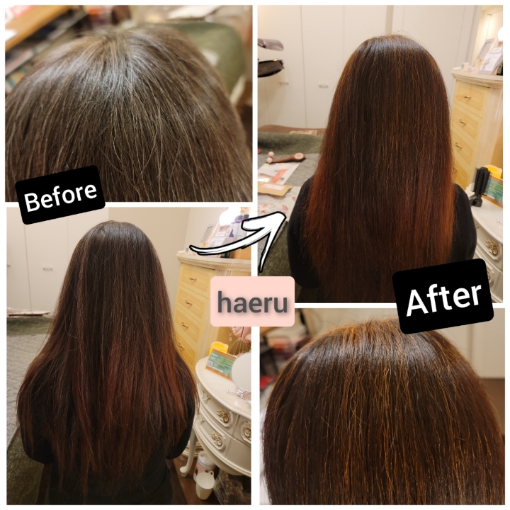 仕上がりが、昔の自分に戻った?くらい、髪の色・質ともに若返っていて嬉しかったです。